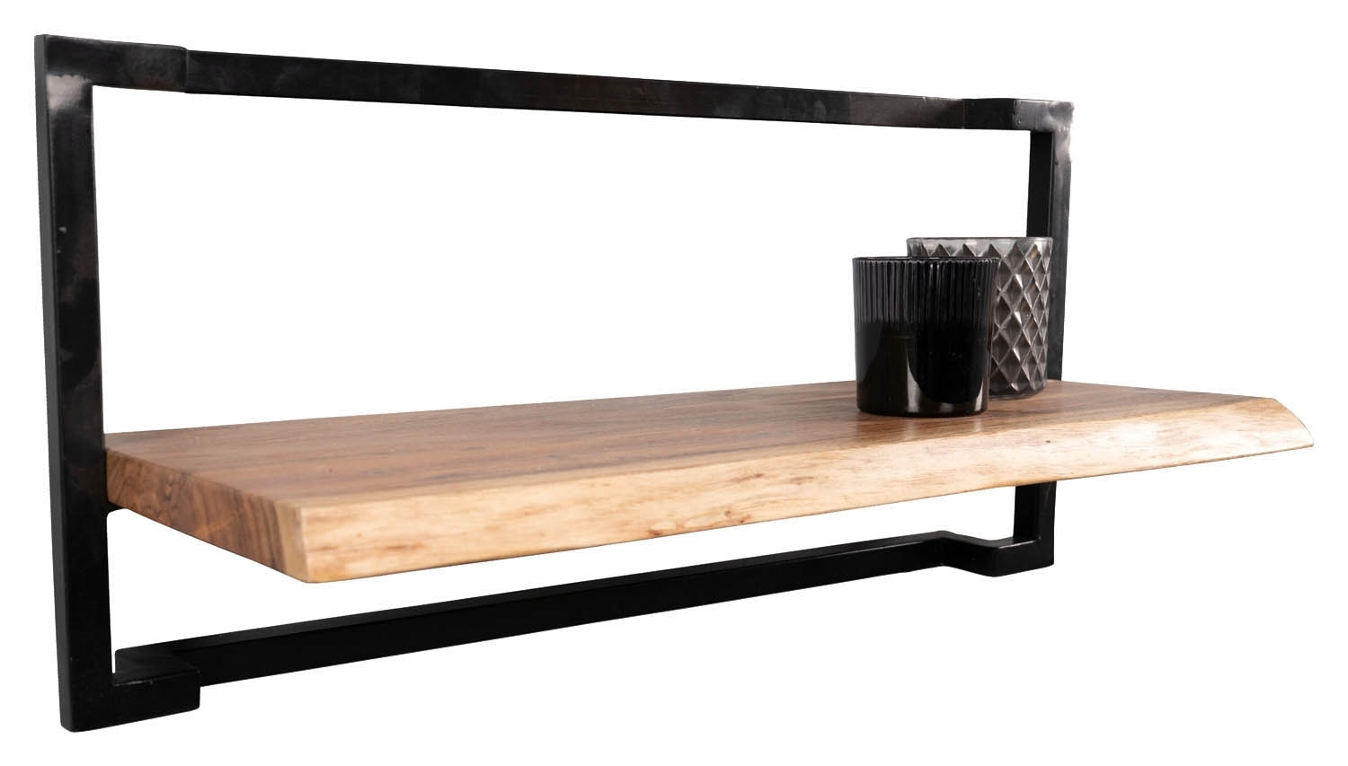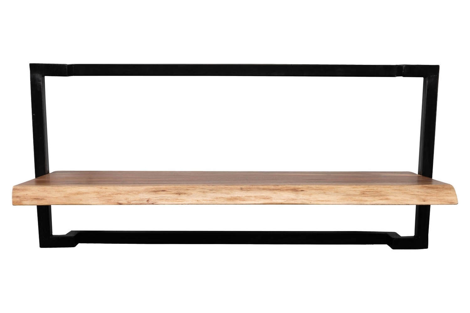 Das Wandregal ACHIM ist die ideale Lösung für stilvolle und funktionale Wandgestaltung. Mit seinem schwarzen Metallrahmen und der Ablagefläche aus massivem Akazienholz bietet es eine moderne und langlebige Option für Ihr Zuhause. Mit Maßen von 65 cm Breite, 30 cm Höhe und 27 cm Tiefe bietet es ausreichend Platz für Bücher, Blumen, Deko und vieles mehr. Egal ob im Wohnzimmer, Schlafzimmer oder Flur - dieses Wandregal ergänzt Ihre Einrichtung perfekt und schafft zusätzlichen Stauraum mit Stil.