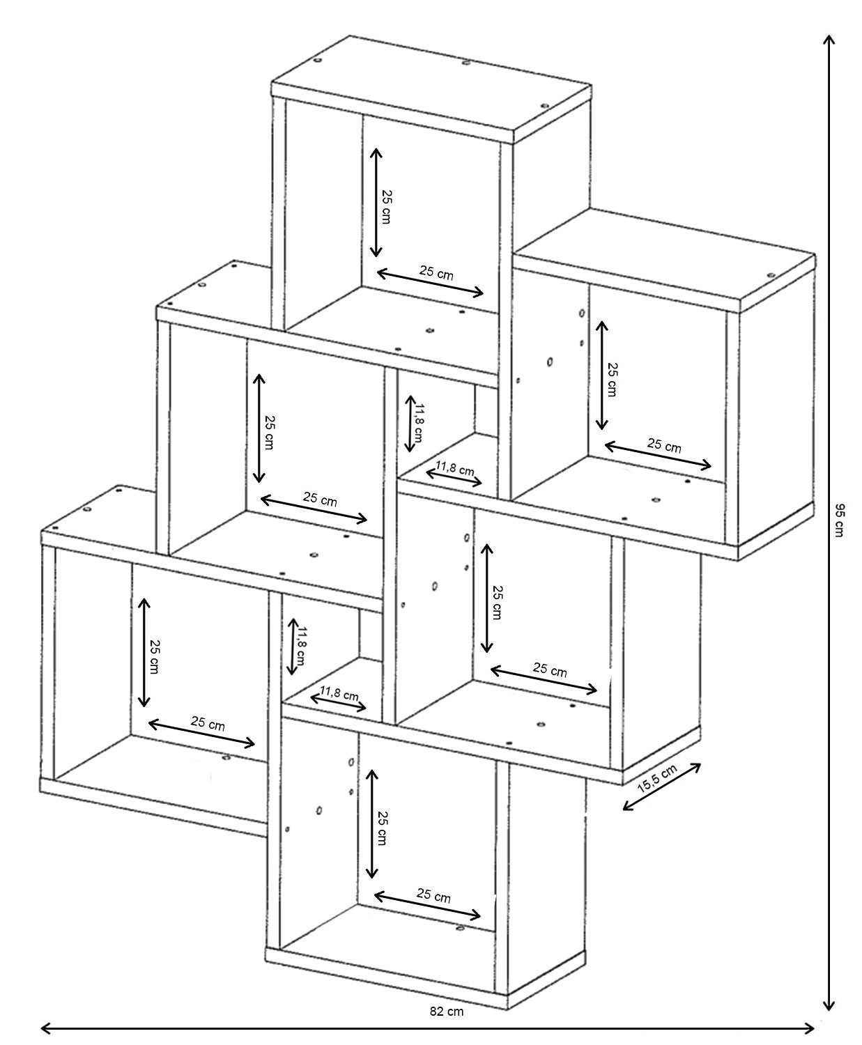 | Lieferumfang: | 1 Wandregal mit 8 Ablageflächen, nur im Hochformat montierbar |