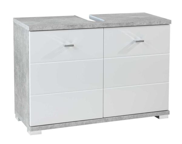 Weiß Hochglanz - Betondekor - B 80 cm - 2 Türen
