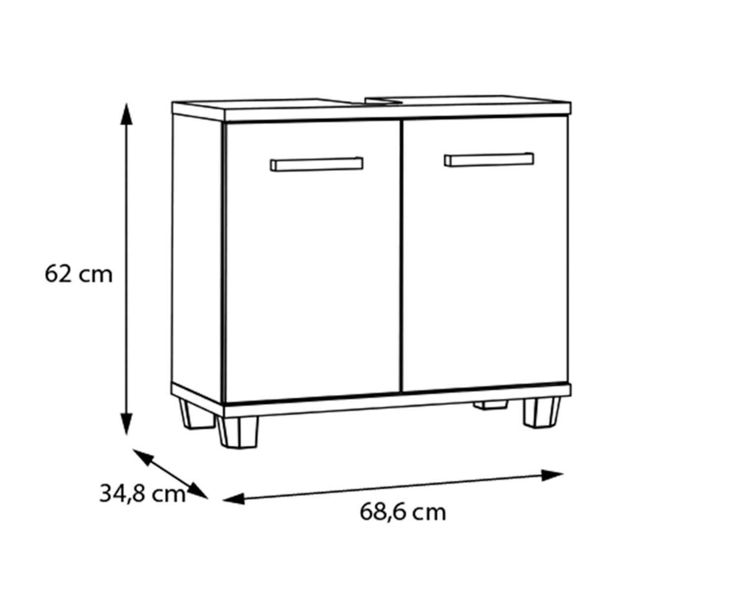 | Lieferumfang: | 1 Waschbeckenunterschrank mit 2 Türen und 1 Einlegeboden |