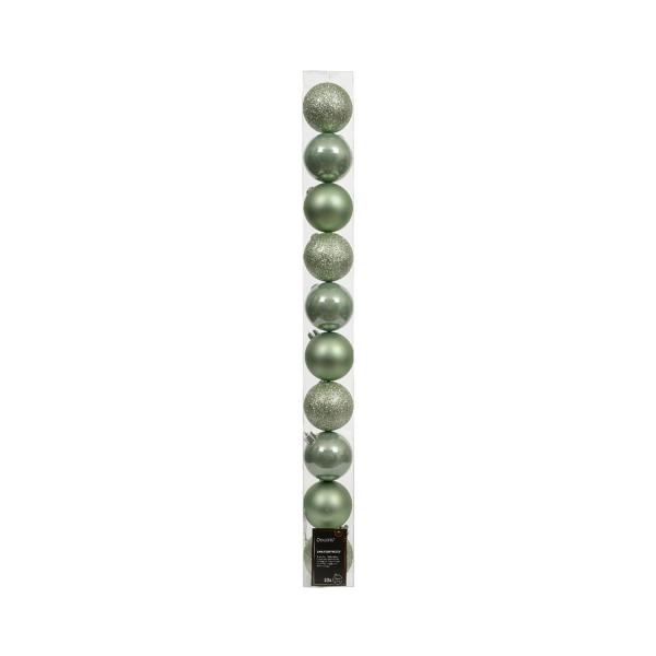 Die Weihnachtskugeln in Matchagrün bringen festlichen Glanz an jeden Tannenbaum. Mit einem Durchmesser von 6 cm und gefertigt aus bruchfestem Kunststoff sind sie langlebig und sicher im Gebrauch. In der praktischen 10er Box enthalten sind drei Kugeln in glänzender, drei in matter sowie vier in glitzernder Optik – eine abwechslungsreiche Mischung, die für ein harmonisches Gesamtbild sorgt. Ideal für den Innenbereich, setzen die Kugeln elegante Akzente und schaffen eine stimmungsvolle Weihnachtsatmosphäre.
