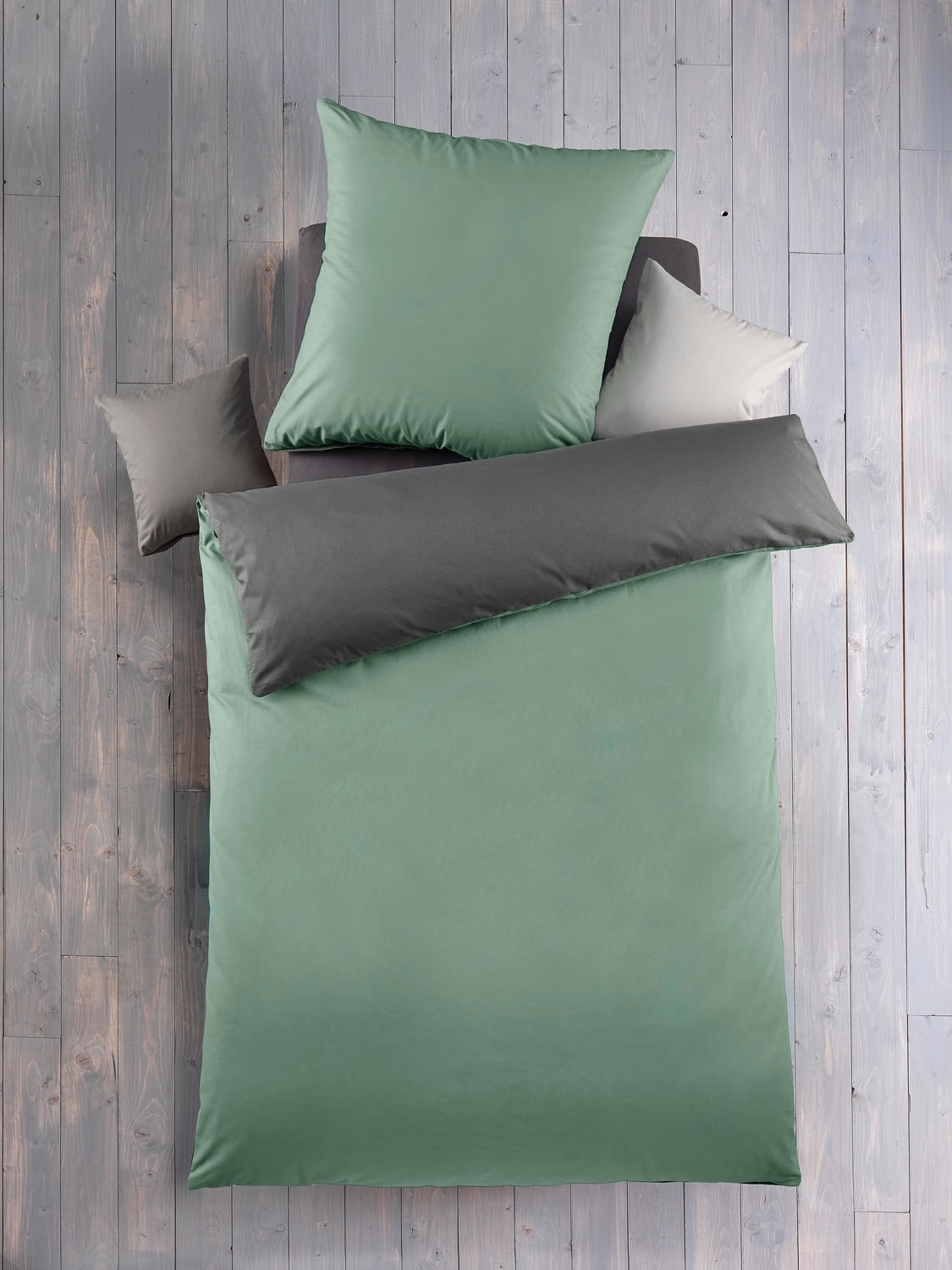 135 x 200 cm - Salbeigrün - Grau - Baumwolle - mit Reißverschluss