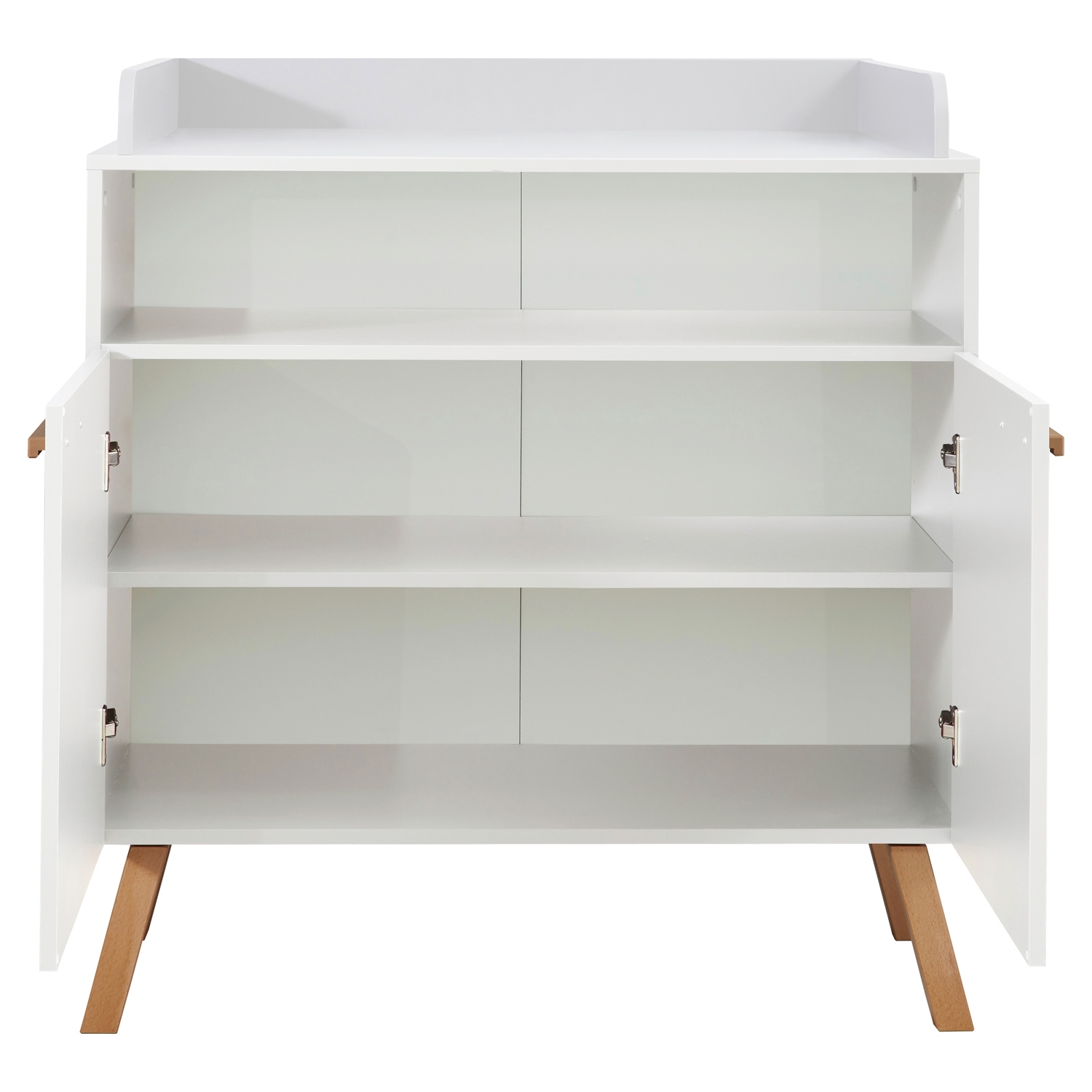 B 96 cm - 2 Türen - Bianco Buche Dekor - Weiß matt - inkl. Wickelaufsatz