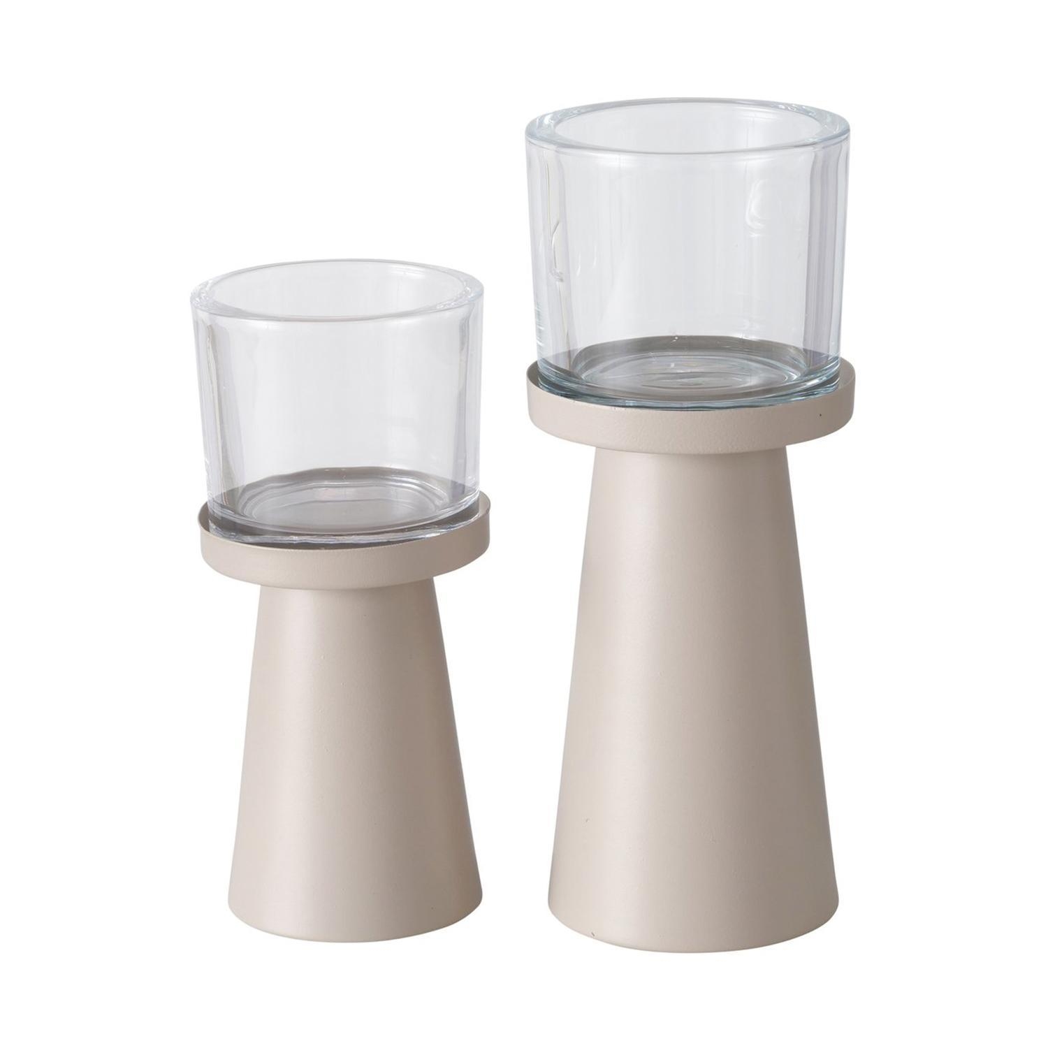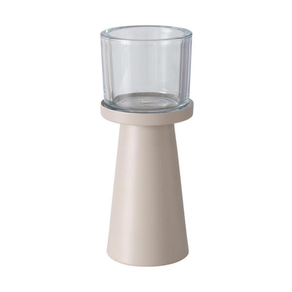 H 23 cm - Beige - Transparent - Eisen - mit Glaseinsatz