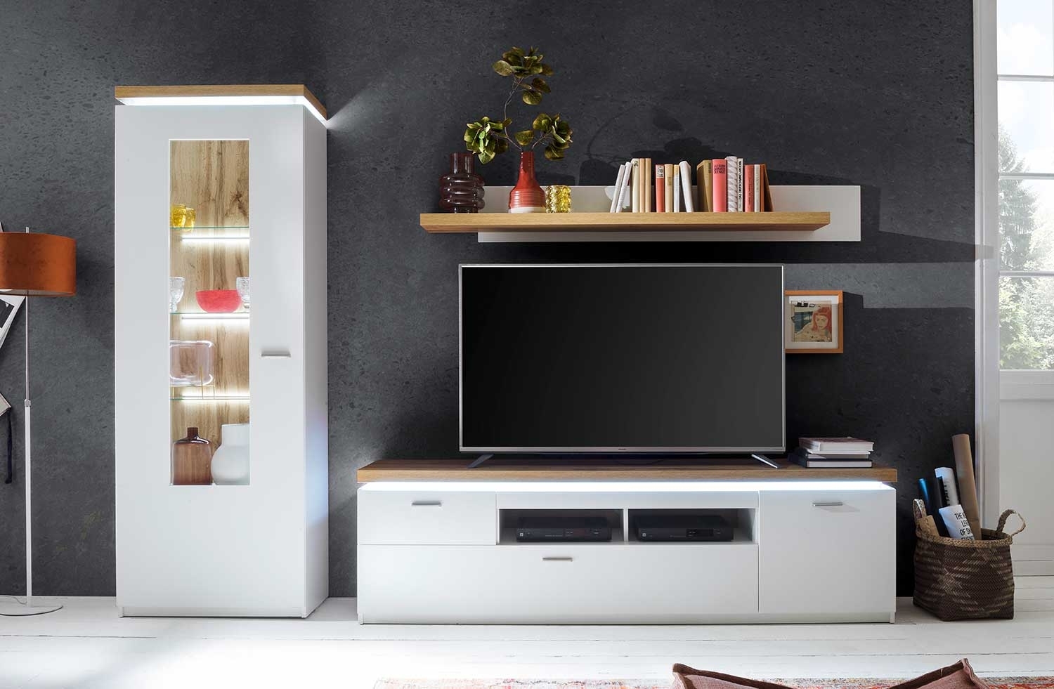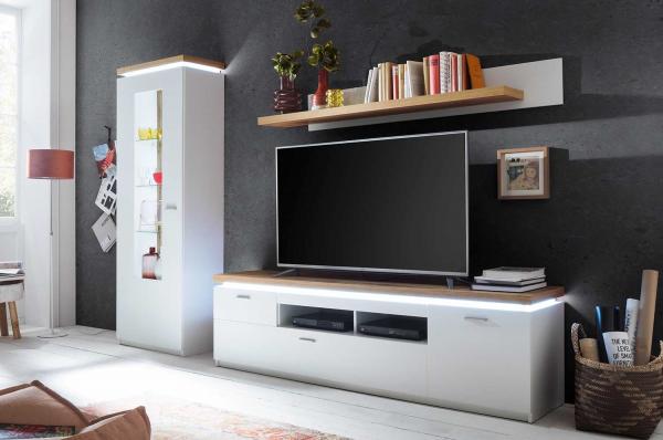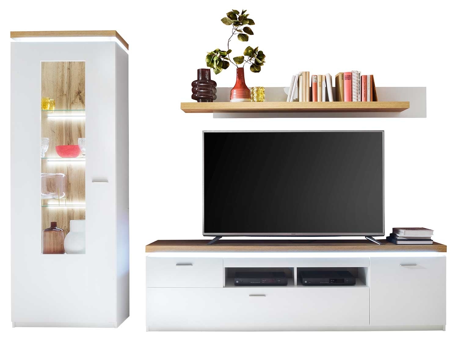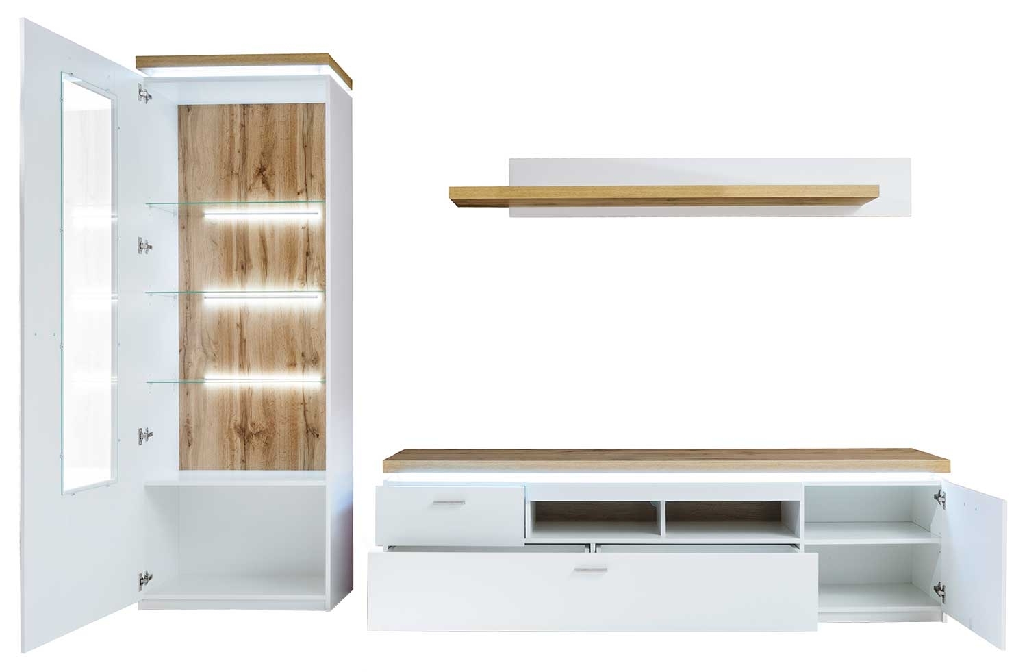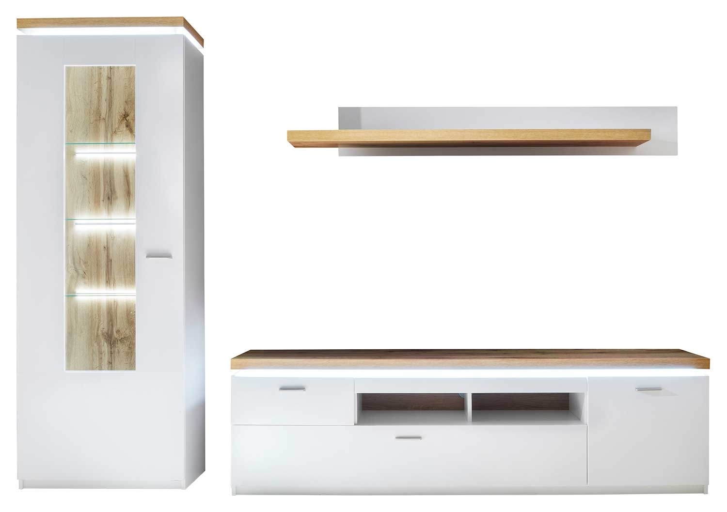 Weiß - Wotan Eiche Dekor - 3-teilig - inkl. LED-Beleuchtung