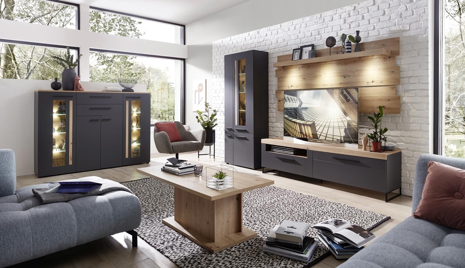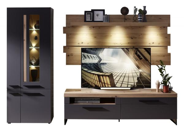 Graphit supermatt Dekor - Artisan Eiche Dekor - 3-teilig - LED-Beleuchtung
