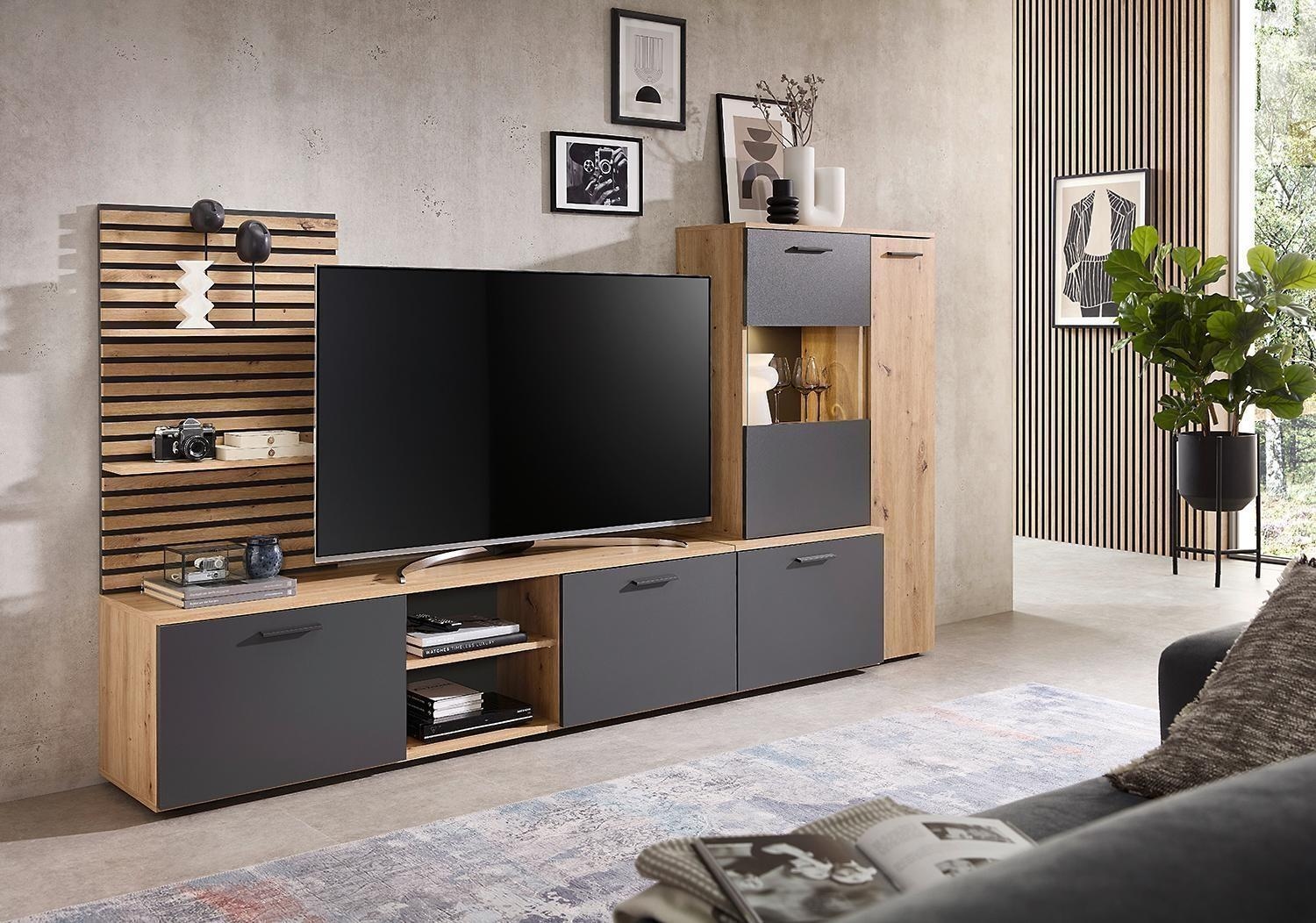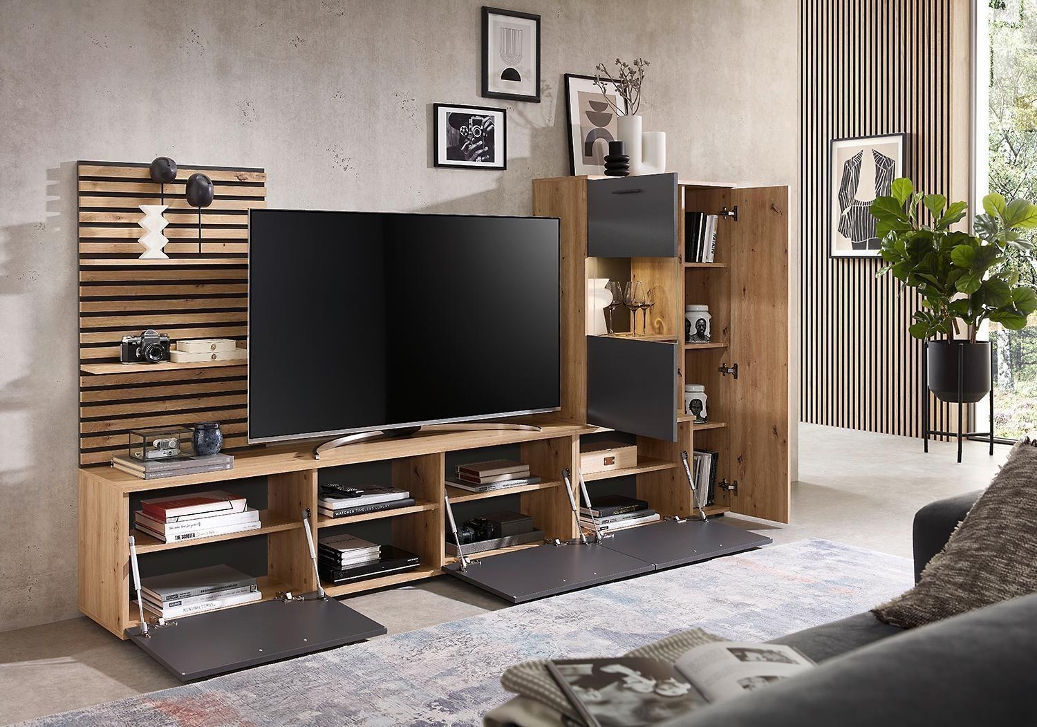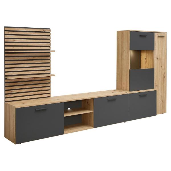 - Wohnwand in Artisan Eiche Dekor