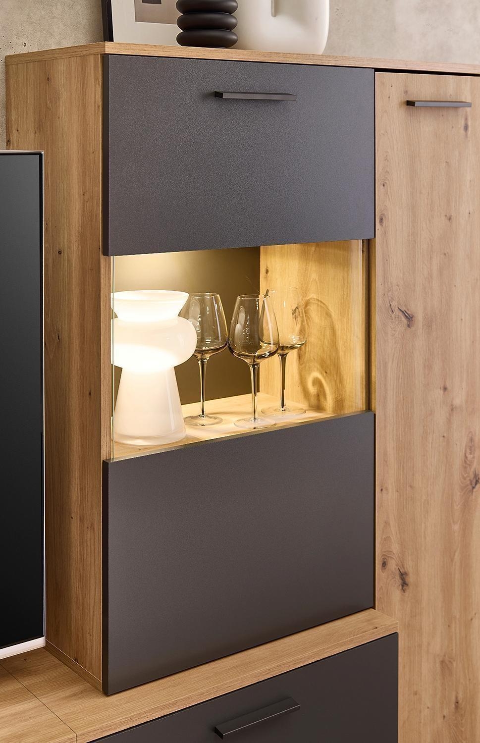 Artisan Eiche Dekor - Anthrazit - mit LED-Beleuchtung