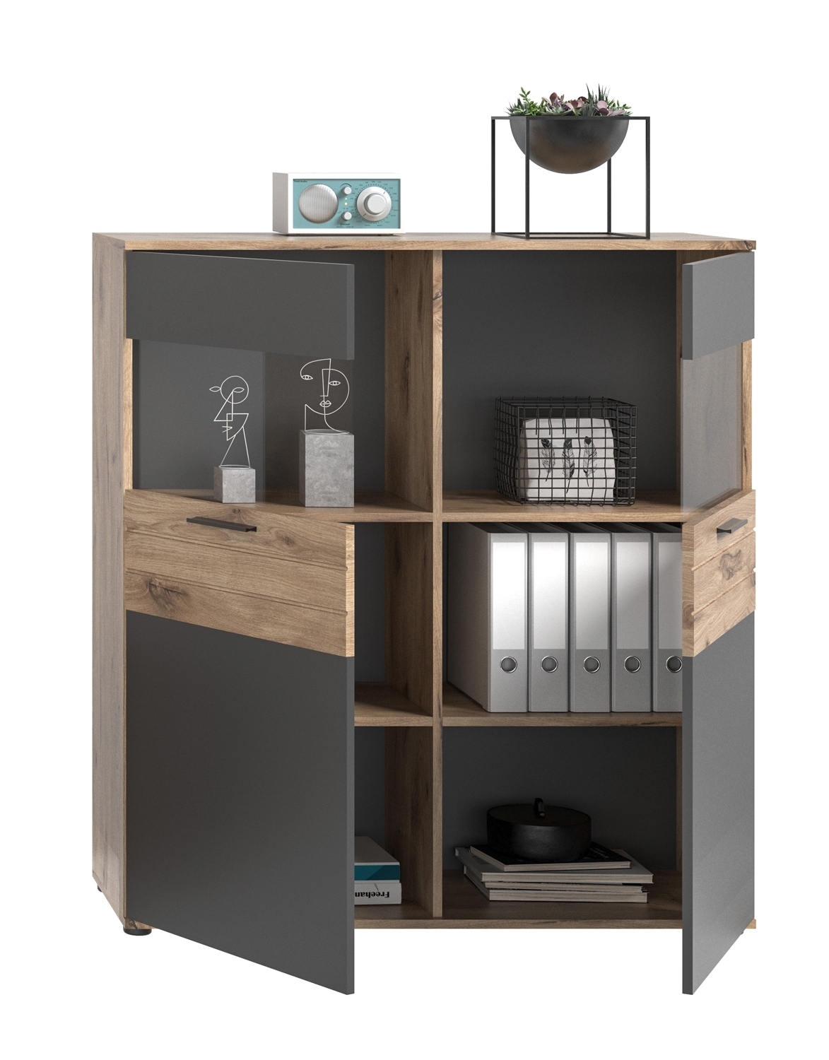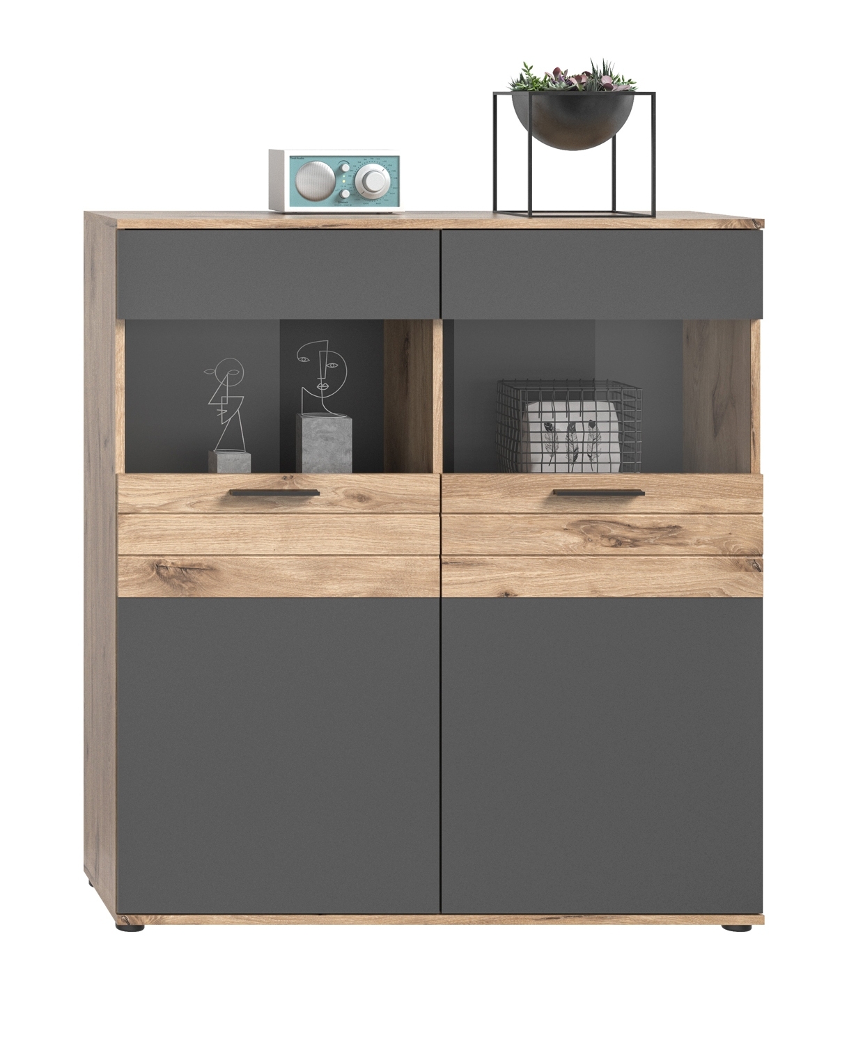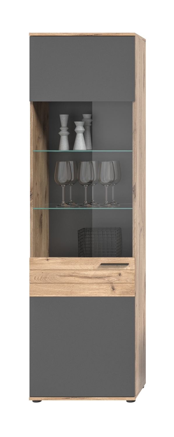- Wohnwand in Nox Eiche Dekor und basaltgrau