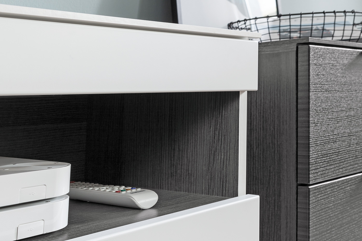 | Lieferumfang: | 5-teilige Wohnwand bestehend aus 1 TV Lowboard, 2 Schubladenschränken und 2 Wandboards. Die auf dem Boden stehenden Möbel können mit oder ohne Sockel verwendet werden |
