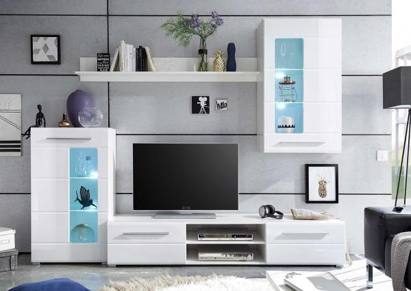 | Lieferumfang: | 4-teilige Wohnwand bestehend aus 1 TV-Lowboard, 1 Wandboard, 1 Highboard und 1 Hängeschrank ohne Beleuchtung |