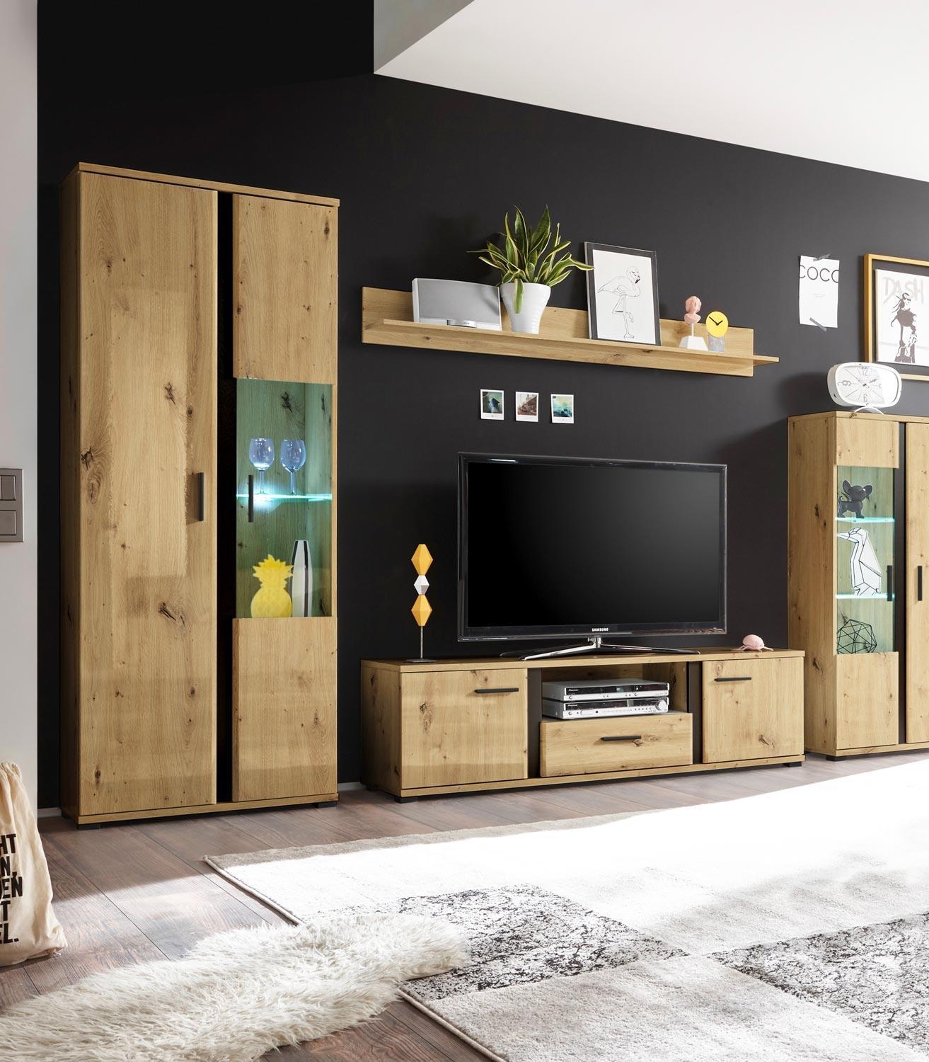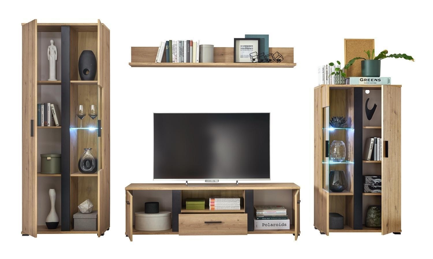 - Wohnwand in Artisan Eiche Dekor