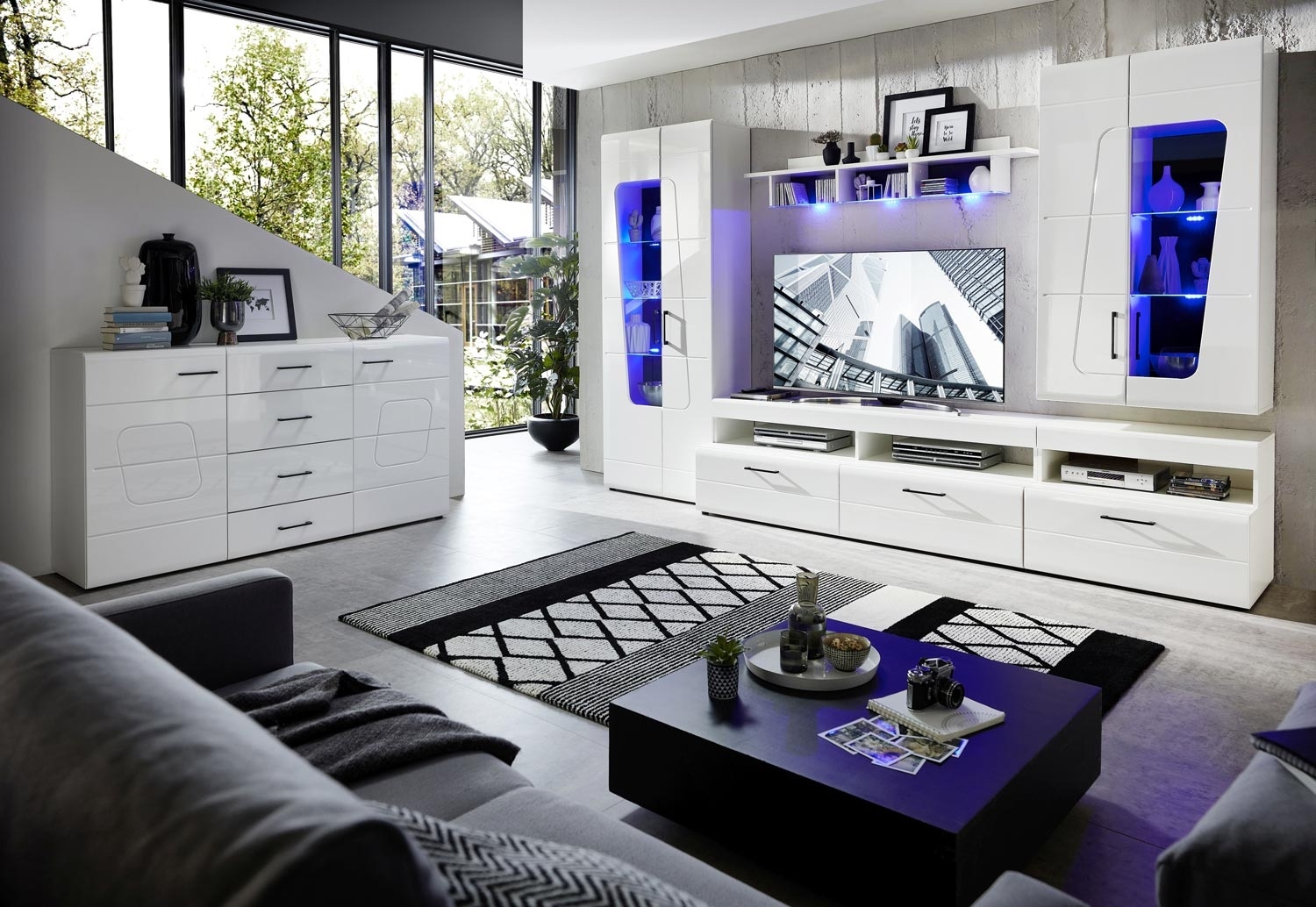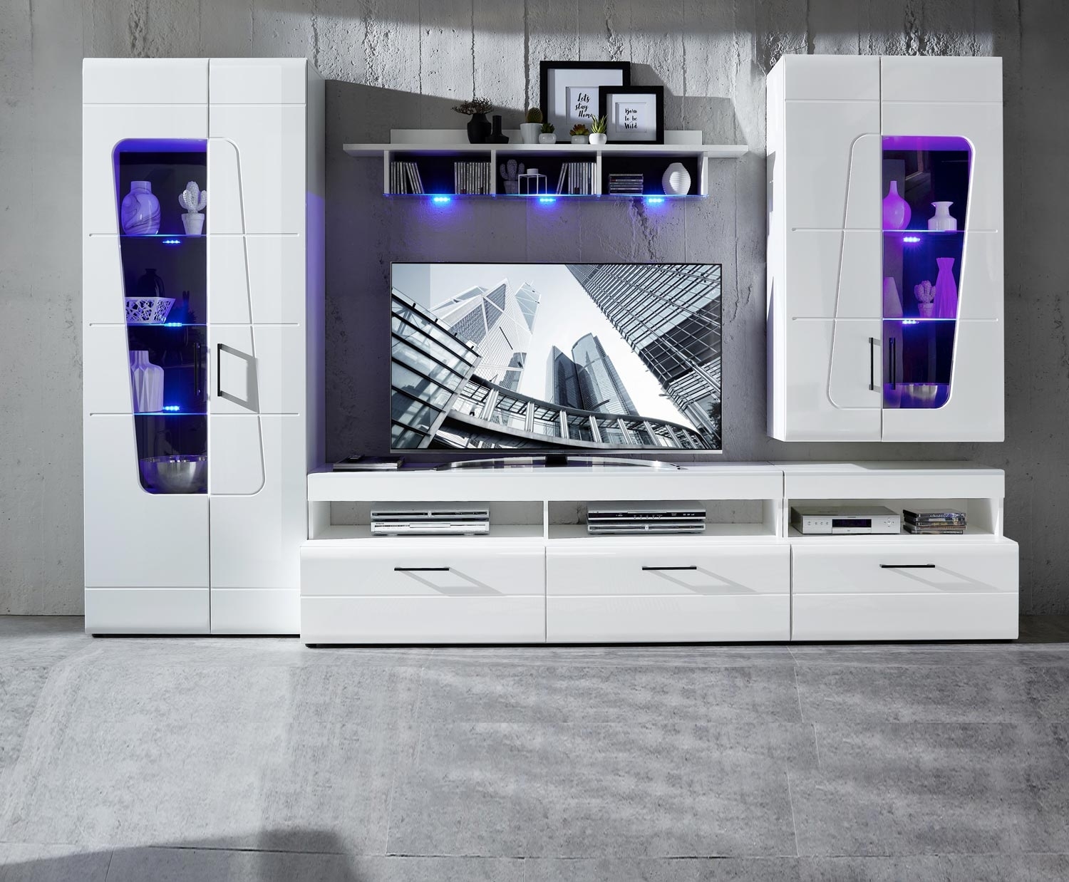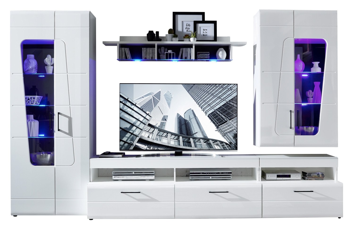 | Lieferumfang: | 5-teilige Wohnwand bestehend aus 2 TV-Lowboards, 1 Wandboard, 1 Highboard und 1 Wandschrank. Die Beleuchtung ist mit enthalten. |