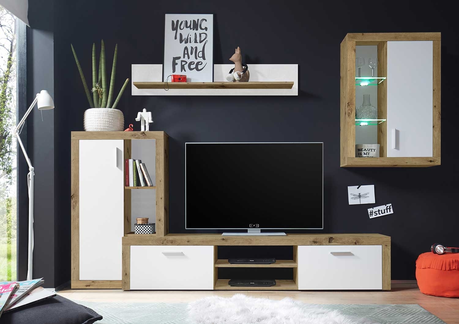 - Wohnwand in Artisan Eiche Dekor
