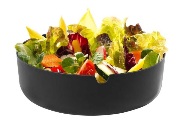 Das 4-teilige Salatschüssel-Set KYRA in Schwarz und Natur vereint Stil und Funktionalität. Es umfasst eine robuste Kunststoffschüssel mit einem Durchmesser von 30 cm, einen praktischen Ausgussrand sowie einen Deckel und zwei Salatbestecken aus Holz. Durch die beiden Öffnungen am Rand kann der Deckel ganz einfach herunter genommen werden. Das schlichte, einfarbige Design in Schwarz und Naturfarben verleiht Ihrem Tisch eine elegante Note. Perfekt für den täglichen Gebrauch oder besondere Anlässe.