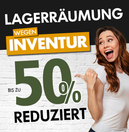 Bei uns geht das neue Jahr mit einer Inventur und dazugehörigen Lagerräumung los. Das bedeutet für uns Platz für Neues und für Sie tolle Möbel und Accessoires um bis zu 50 % günstiger! Aktuelle Angebote aus allen Abteilungen finden Sie in unserer Ausstellung und natürlich im aktuellen Prospekt.