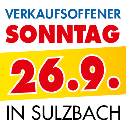 Wenn Sie am Wochenende Lust auf einen gemütlichen Sonntagsbummel haben, dann laden wir Sie am 26.09. gerne zu uns nach Sulzbach ein. Mit großem Marktreiben und vielen Sonderangeboten ist hier für jeden was dabei!